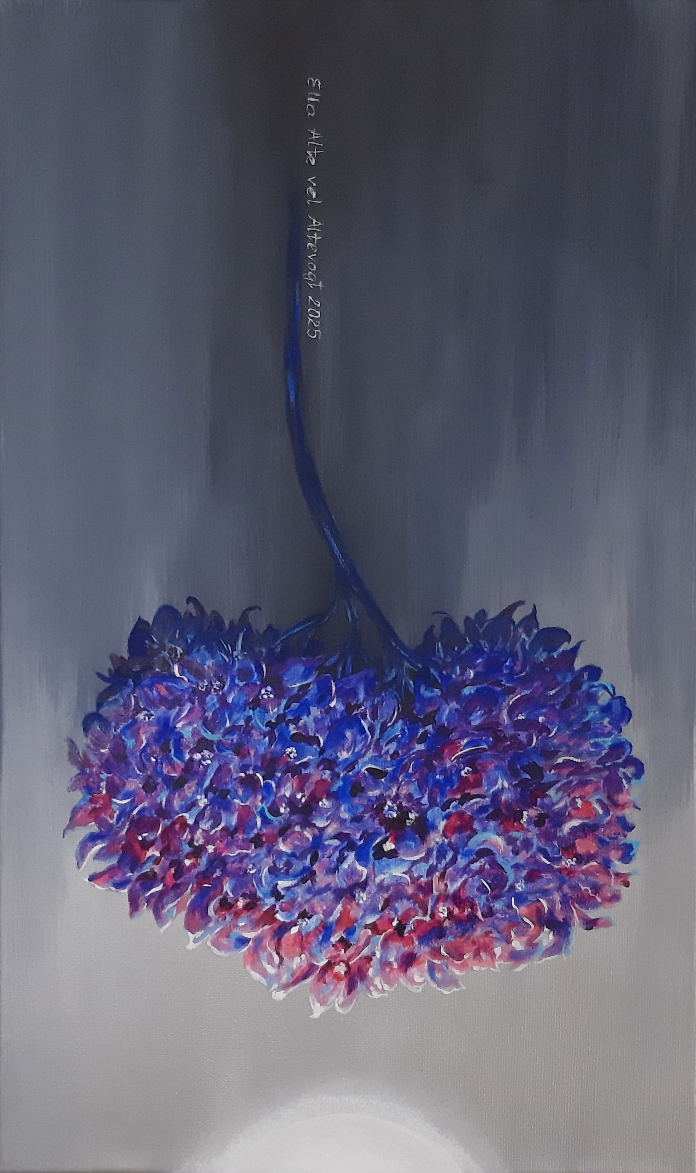 Hortensja z serii Wariacje na temat hortensji, akryl na płótnie 3D, 50 x 30 cm, 2025 (nr 398).